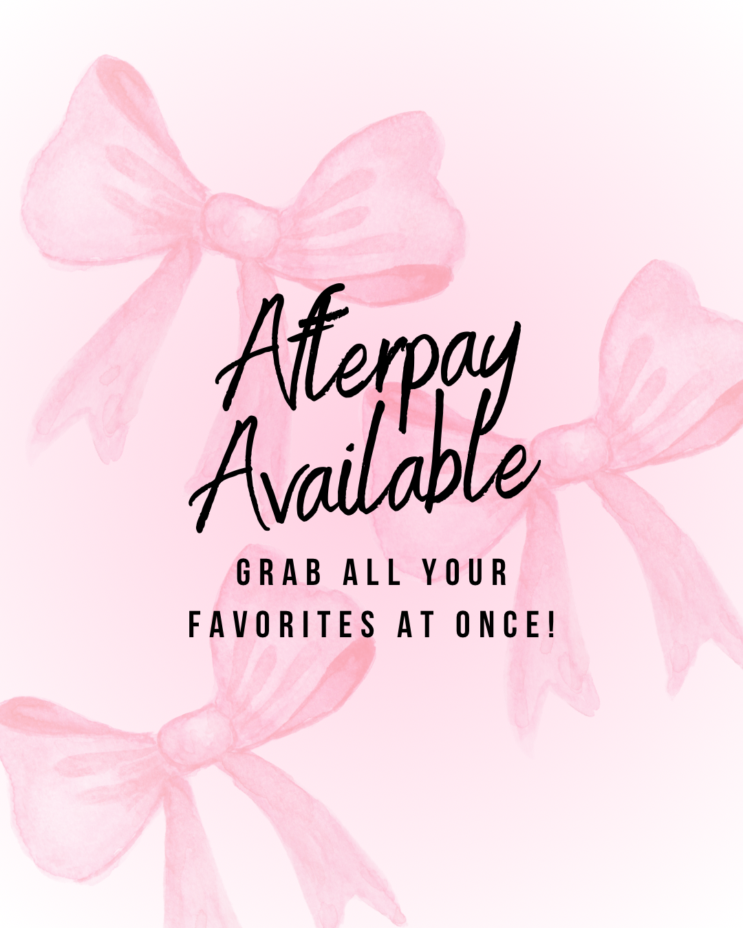 Purchase everything you love at once with our easy installment plans available by AfterPay & Shop Pay. Your total will be divided into 4 monthly payments.
