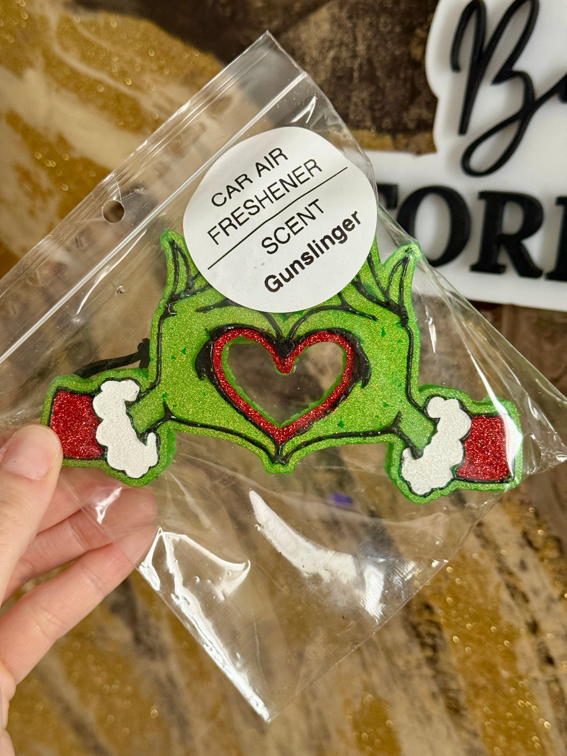 Green Heart Hands Air Freshie (Gunslinger Scent)
