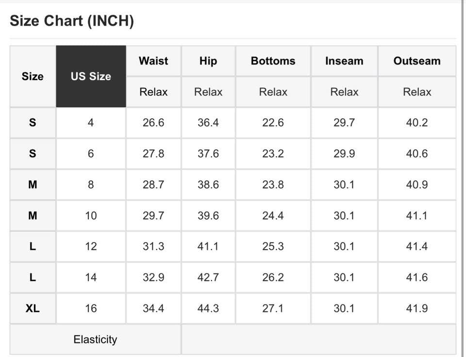 Size chart shown in photos
