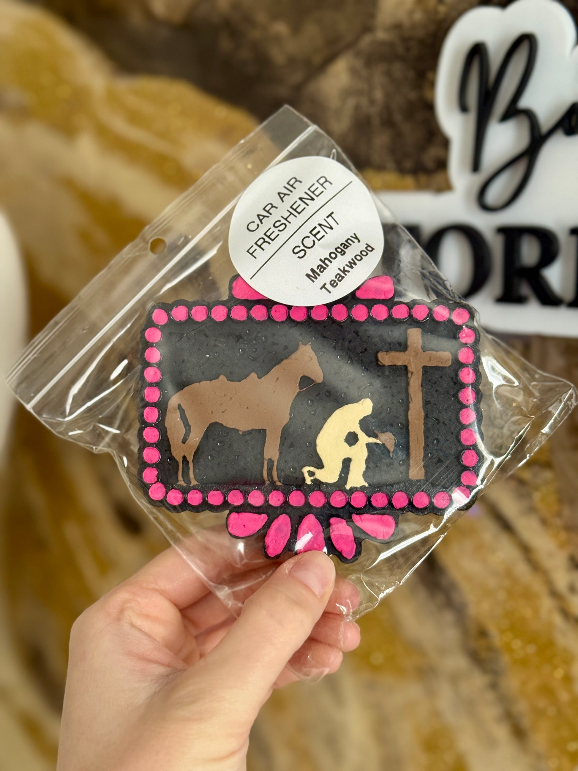 Pink Jesus Cross Air Freshie (Mahogany Teakwood Scent)
