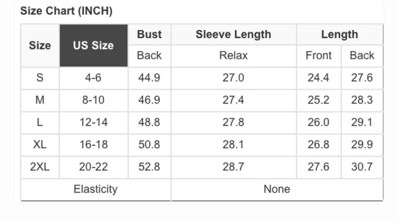 • Fit true to size (size chart in photos)